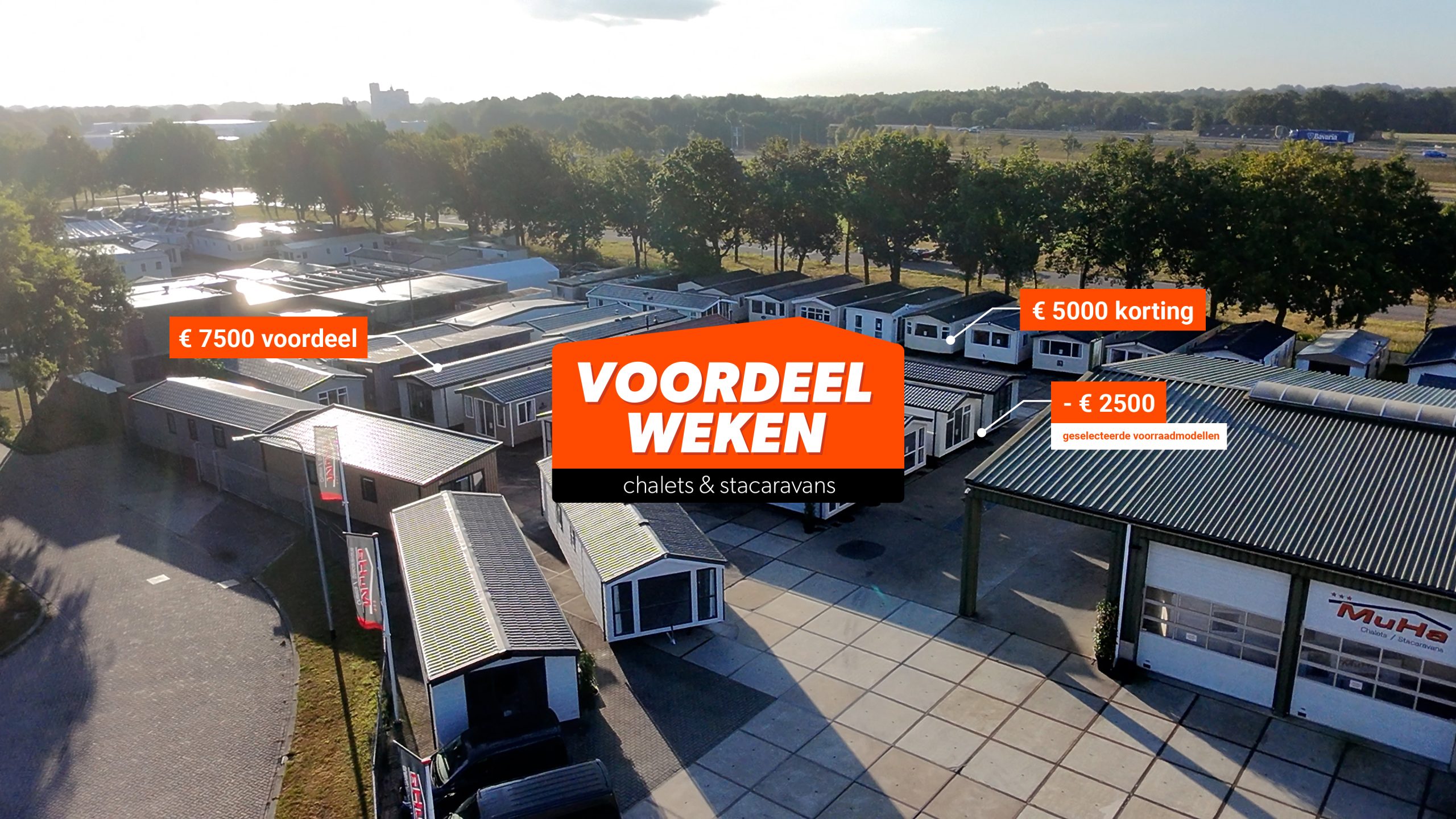 Droom jij al langer van een eigen plek in de natuur? Een chalet of stacaravan waarin je op elk moment kunt genieten van rust, comfort en vrijheid? Dan is dit het moment. Tijdens de Muha Voordeelweken profiteer je van kortingen tot maar liefst €3.000 op een selectie van direct leverbare chalets en stacaravans. Onze voorraadmodellen staan klaar om jou die ultieme vakantieplek te bieden — of dat nu aan de rand van het bos is, op je favoriete camping of aan het water.