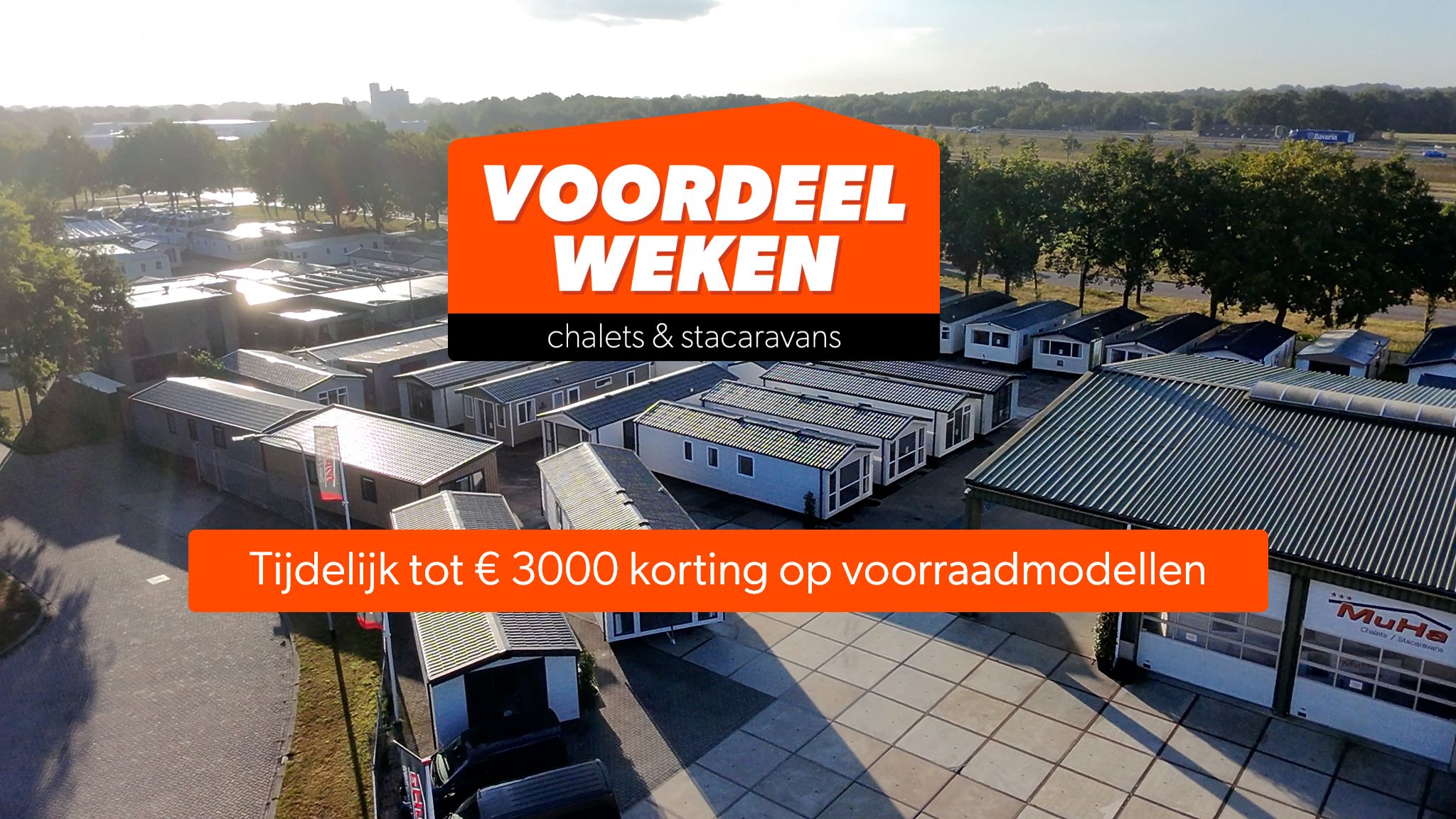 Droom jij al langer van een eigen plek in de natuur? Een chalet of stacaravan waarin je op elk moment kunt genieten van rust, comfort en vrijheid? Dan is dit het moment. Tijdens de Muha Voordeelweken profiteer je van kortingen tot maar liefst €3.000 op een selectie van direct leverbare chalets en stacaravans. Onze voorraadmodellen staan klaar om jou die ultieme vakantieplek te bieden — of dat nu aan de rand van het bos is, op je favoriete camping of aan het water.